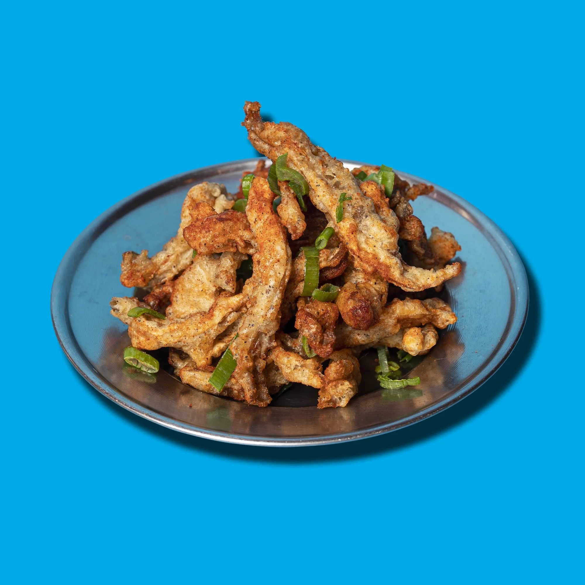Pleurotes de la ferme urbaine La Caverne de la Chapelle, panure très crispy, poudre de cumin.