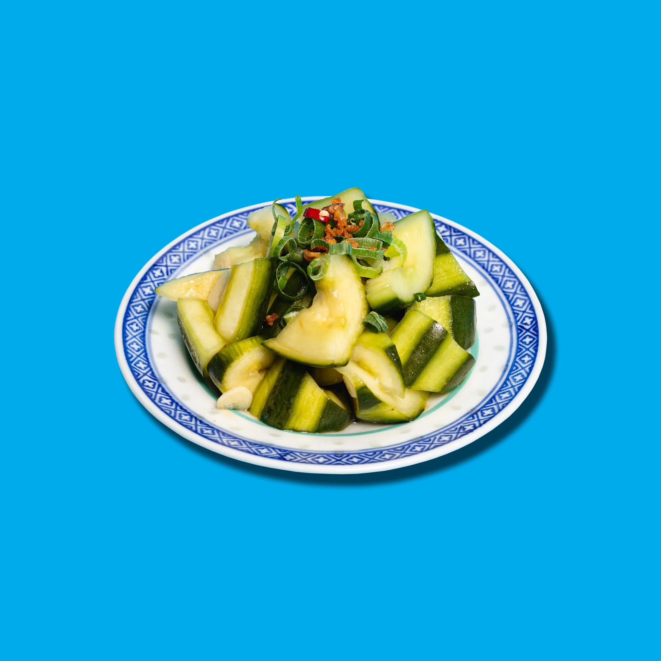 FRESH CUCUMBER SALAD. AMAZING GARLIC DRESSING. be CAREFUL, SLIGHTLY SPICY.