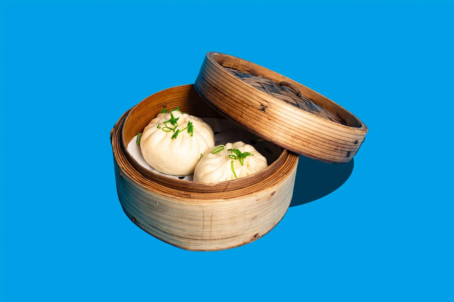 Brioche vapeur au levain, porc, cébette, gingembre. Le classique de la cuisine chinoise.