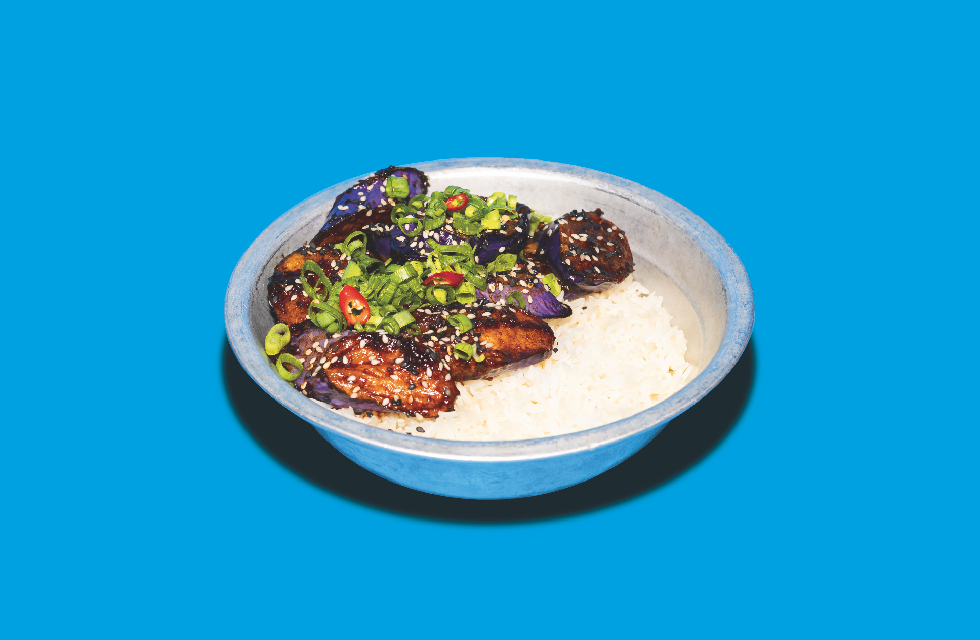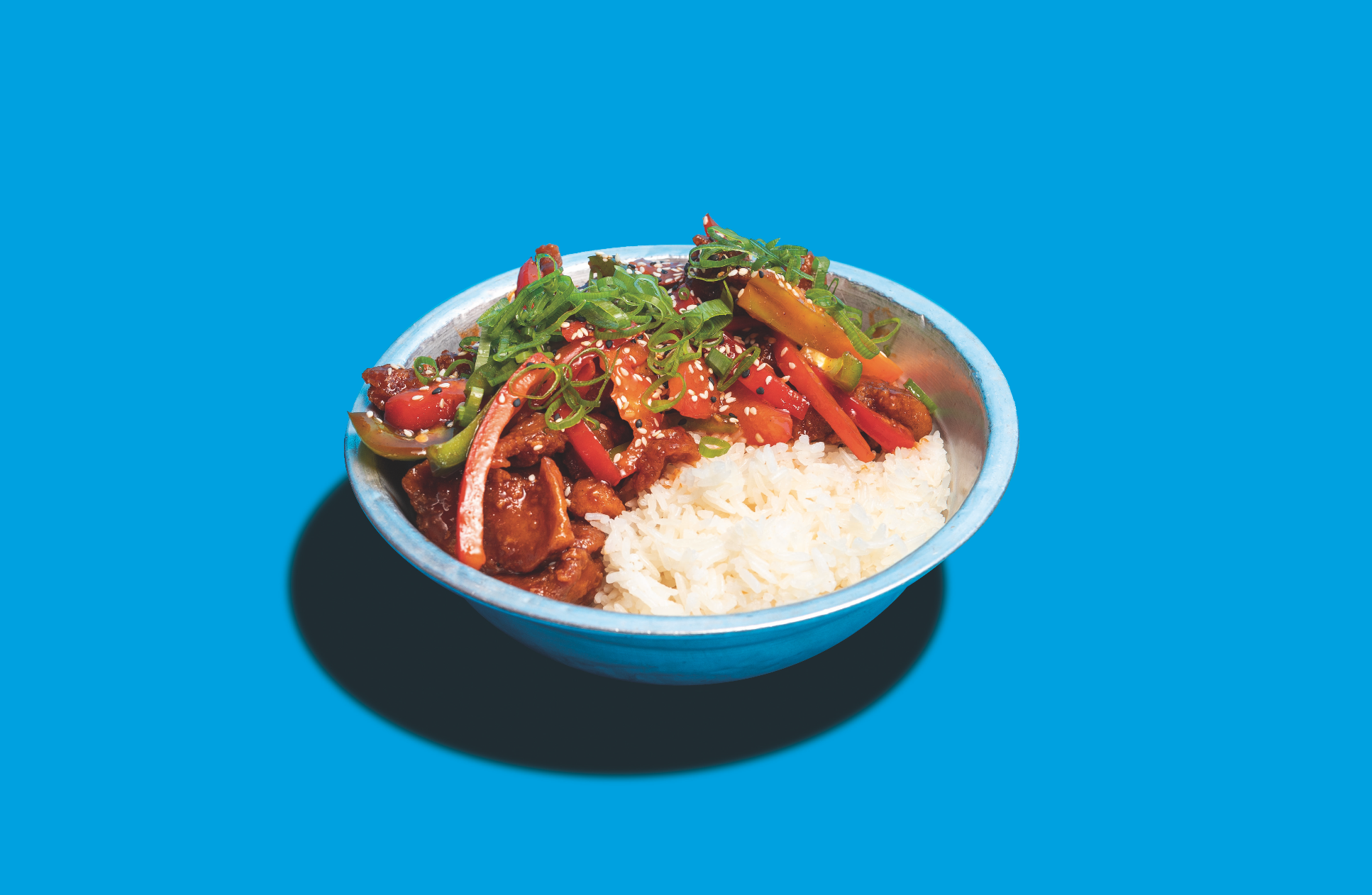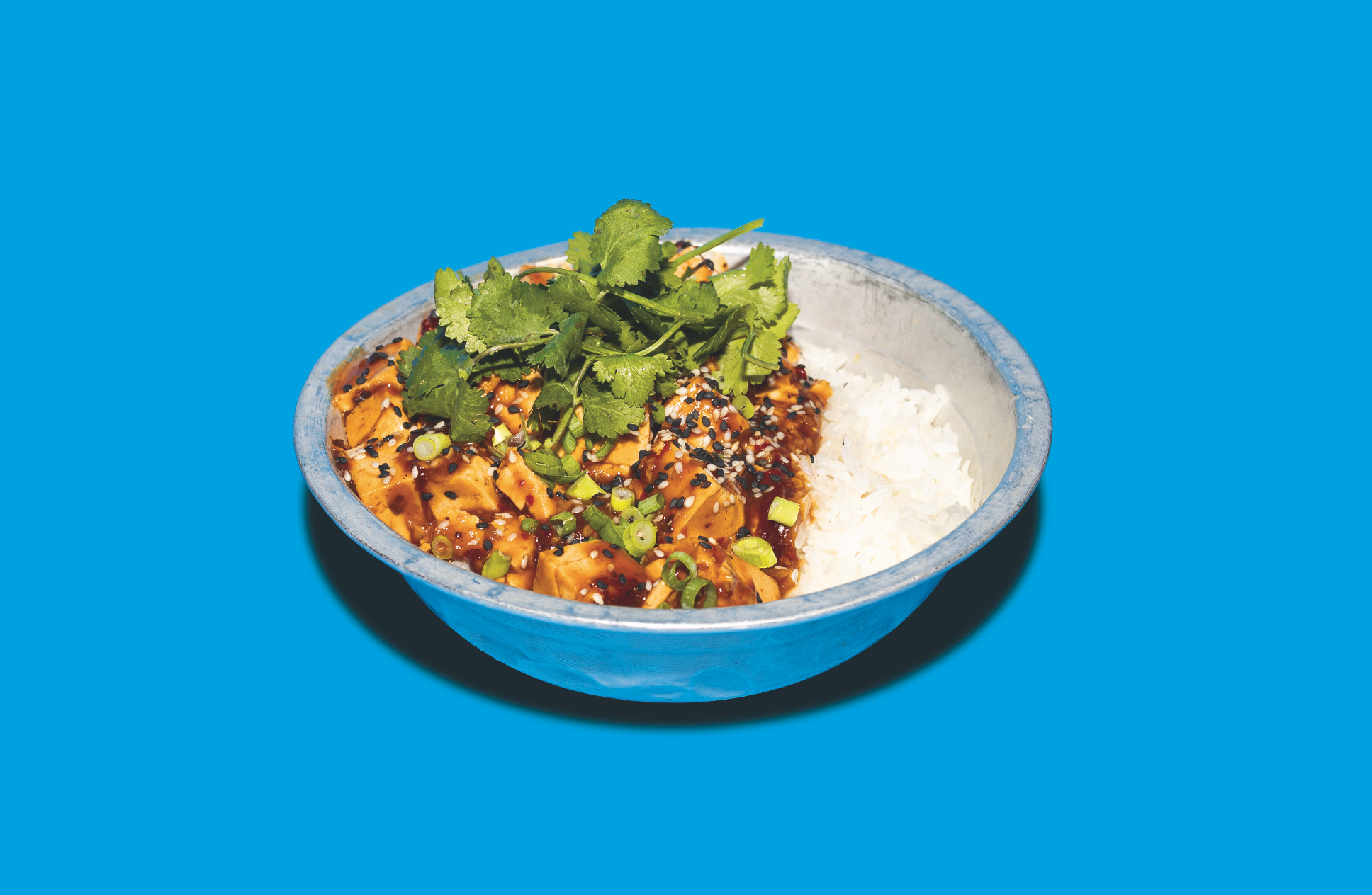 NOTRE MAPO TOFU 100% VÉGÉTARIEN AVEC DU HACHÉ VÉGÉTAL HAPPYVORE, RIZ BLANC.